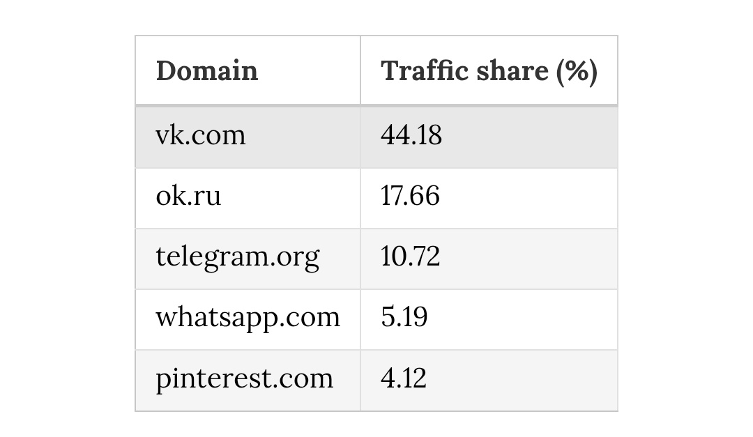 VK and Ok.ru have significant state influence, dominating Russia’s social media with 61.84% of user traffic.