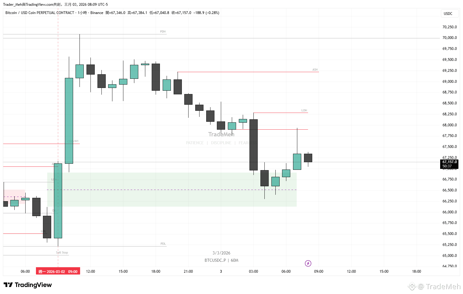 日K:昨日價格獲取了PWH,理論看跌;