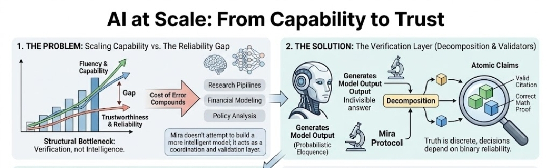Most advanced AI models are optimized for efficiency faster outputs, larger datasets, better pattern recognition. These goals make sense from a performance standpoint. However, the architecture often prioritizes generation over verification. Once the output is produced, it is typically accepted at face value unless manually reviewed.