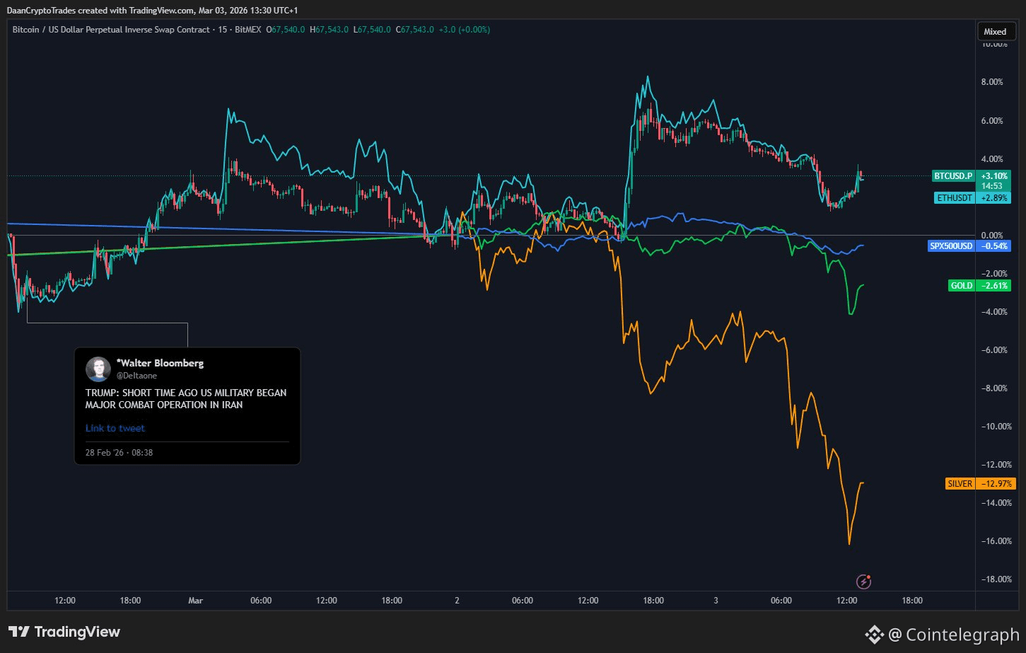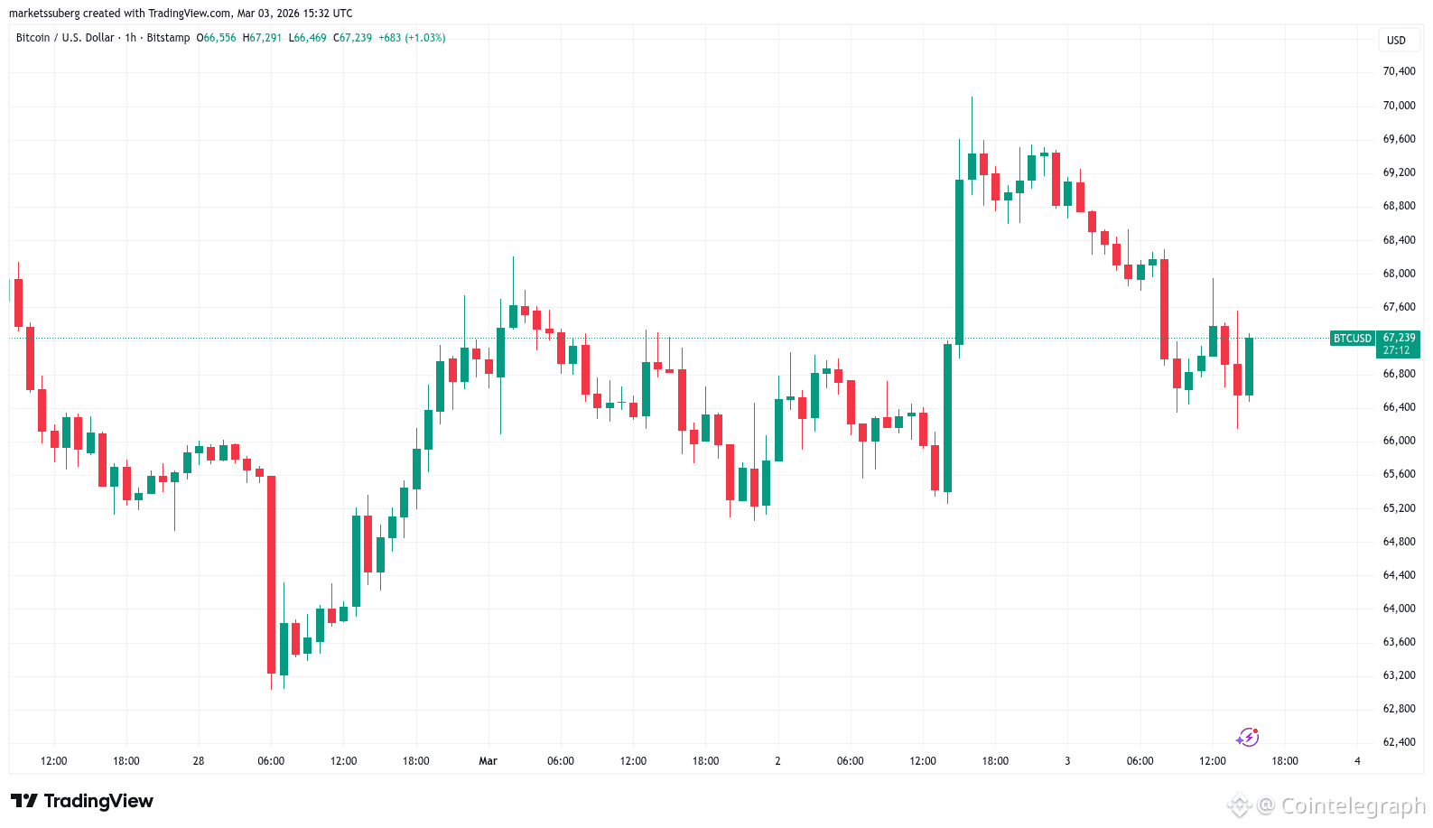 Bitcoin (BTC) erased its latest trip to $70,000 on Tuesday as Middle East tensions sparked a global asset sell-off.