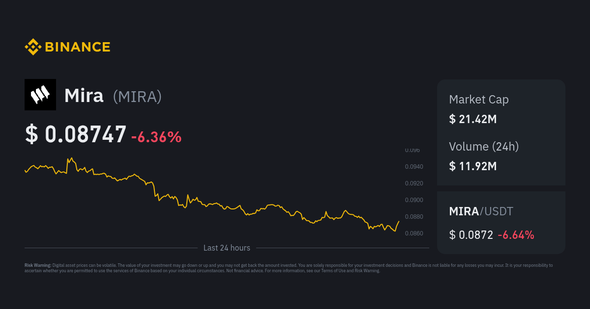Oto najnowszy zrzut zysków dla monety Mira ($MIRA) z aktualnym obrazem wykresu cenowego: