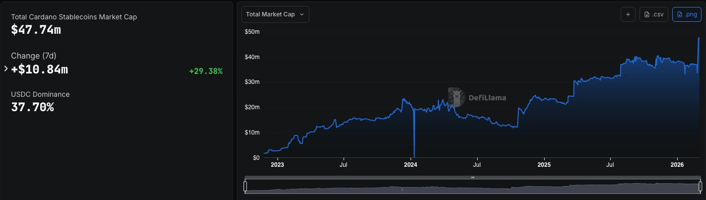 $ADA Cardano's stablecoin market cap surged to around $47.74 million following the USDCx rollout, as reported by Cardanians_io. The launch alone contributed roughly $15 million in new stablecoin supply, pushing weekly growth to about $10.84 million - a near 30% gain in just seven days. Cardano's Stablecoin Supply Jumps 40% After USDCx Launch, Hits $47M - the numbers behind this milestone tell a bigger story about shifting capital behavior on-chain.