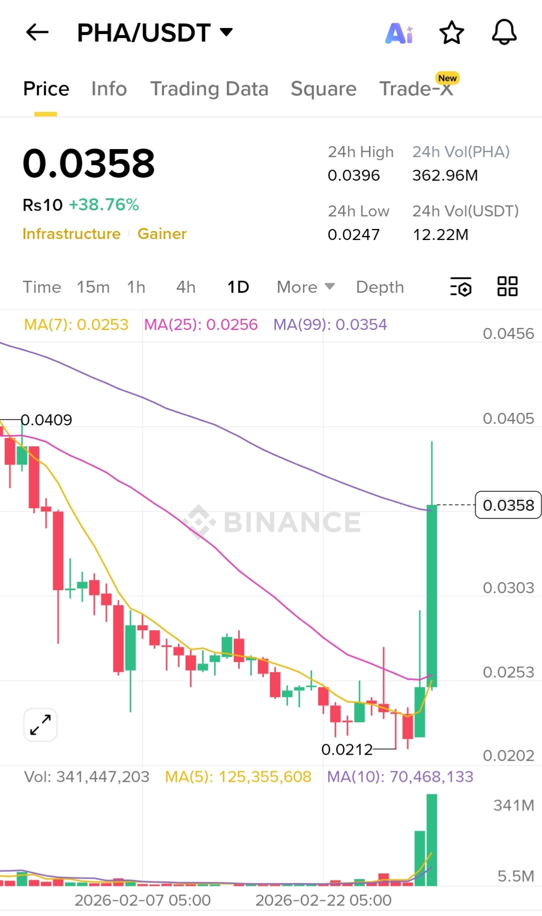 PHA just printed a large expansion candle with massive volume, breaking above the short-term trend structure. Moves like this often lead to short-term volatility and possible consolidation before continuation.