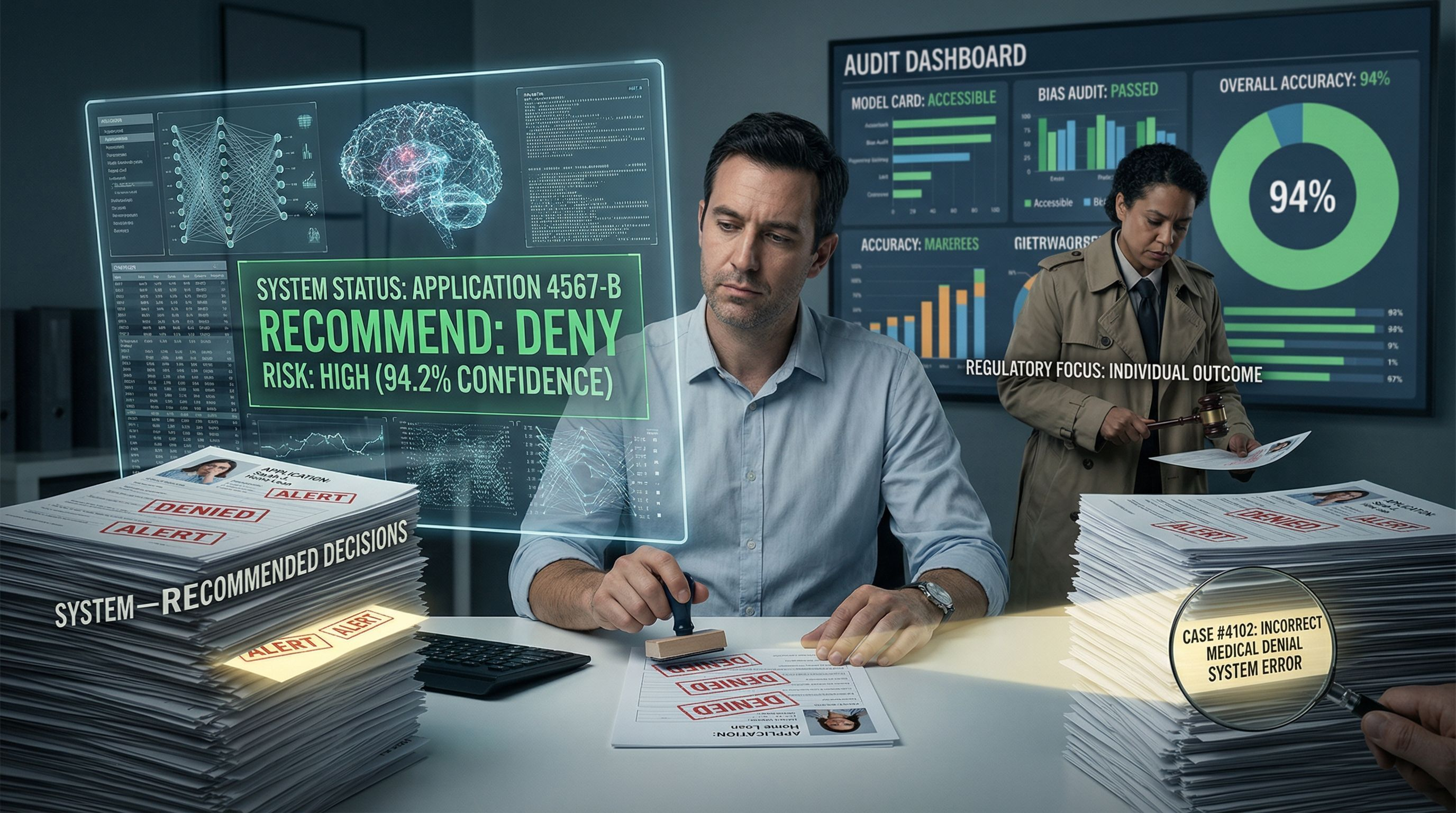 Accuracy is often overemphasized. A model might be 94% correct on average, but the remaining 6% can ruin a mortgage application, misclassify an insurance claim, or deny a medical procedure. Auditors don’t look at averages; regulators don’t examine aggregate performance. Courts focus on the specific outputs that caused harm. Accountability in AI is about the individual decision, not statistical trends.