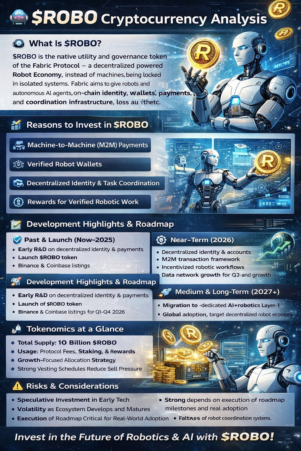 * Like all crypto projects,$ROBO is **highly speculative** and tied to adoption of decentralized AI/robotics, which is still early in real-world usage.