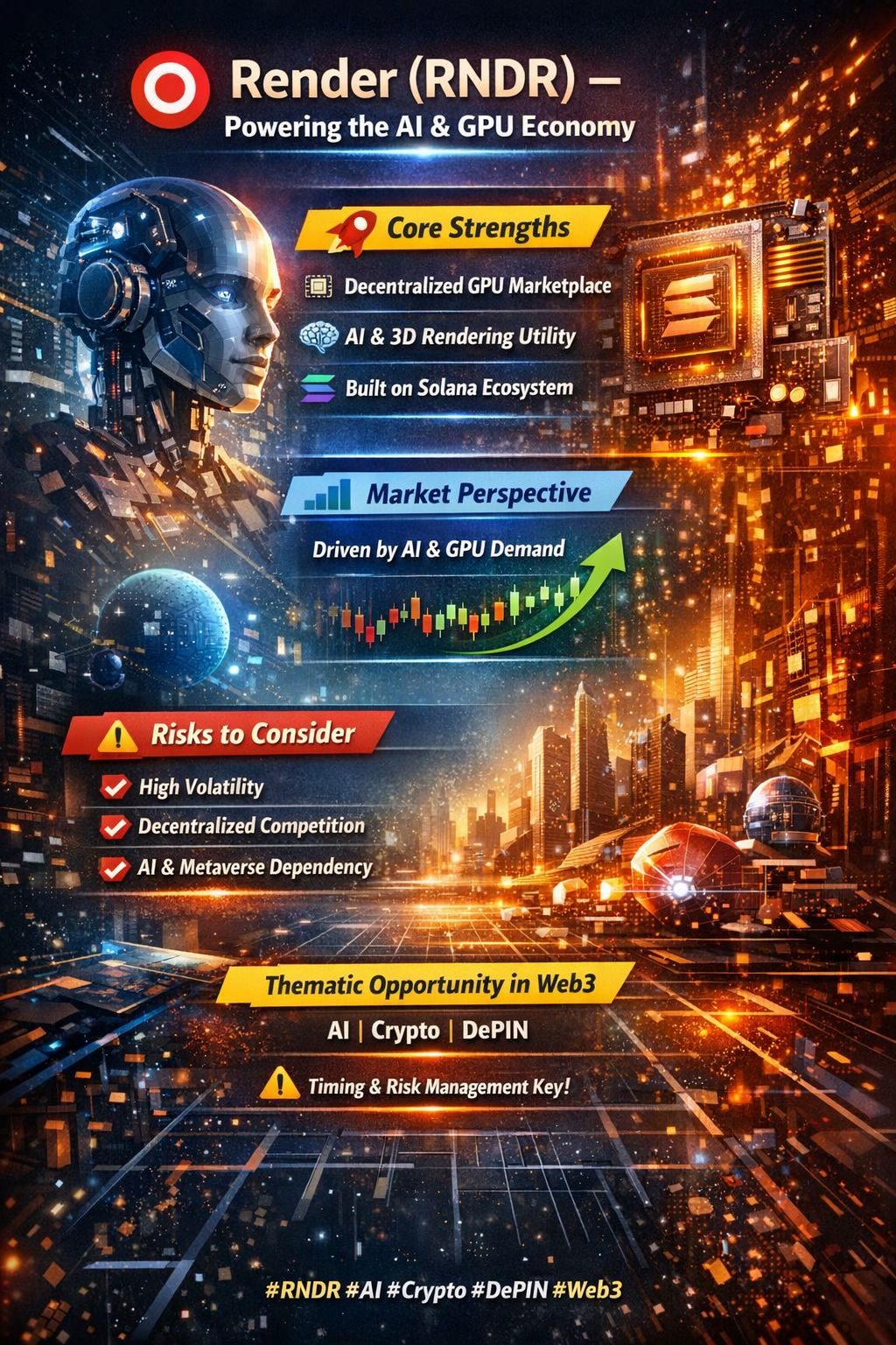 Render stands at the intersection of AI, blockchain, and digital content creation. If GPU demand continues expanding globally, RNDR could remain a strong thematic play in the next crypto cycle — but like all narrative-driven assets, timing and risk management are crucial.