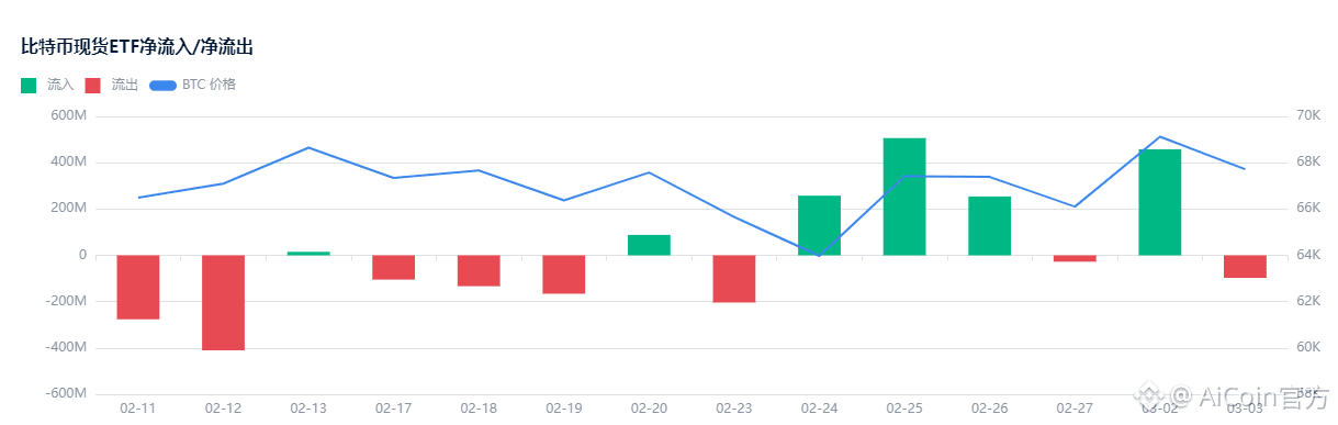 ● 数据显示,过去五个交易日,美国现货比特币ETF逆市吸金约15亿美元 。仅3月3日单日,净流入就达到4.582亿美元,交易额飙升至58亿美元,创下2月初以来的新高 。