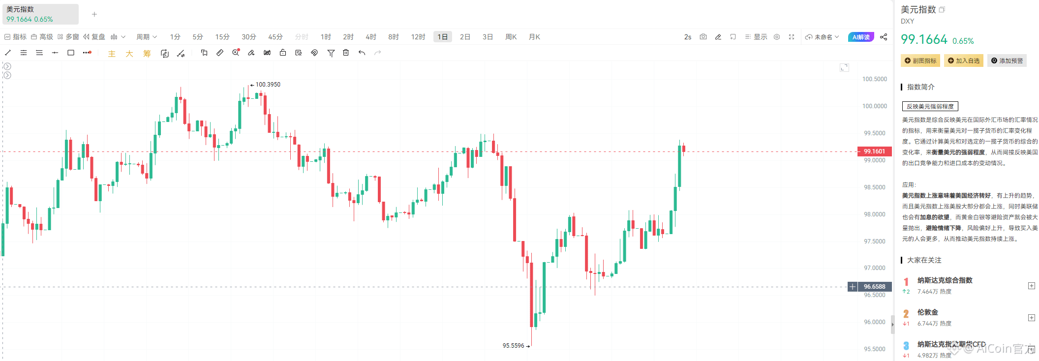 ● 美元指数(DXY)近期一度攀升至99.4,接近三个月新高 。通常情况下,美元走强意味着资金涌向避险资产,风险市场会承压。与此同时,纳斯达克100指数下跌约1%,黄金价格更是单日重挫3.6% 。