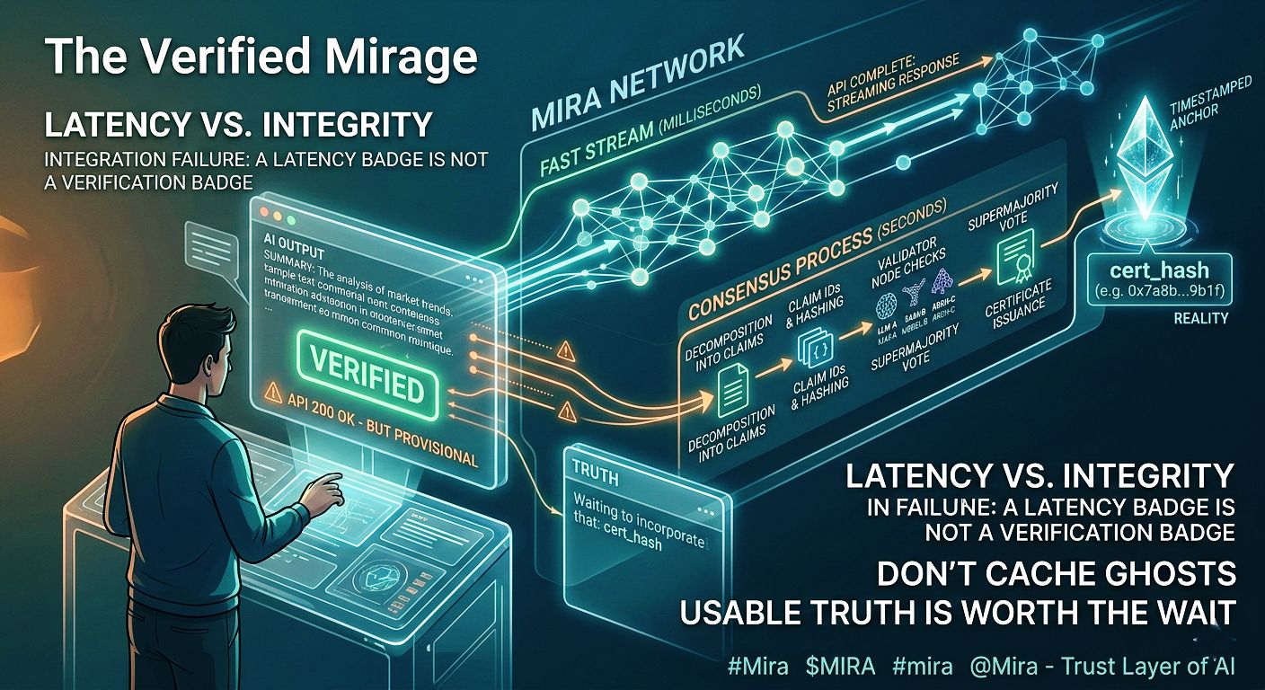 This isn’t a flaw in Mira’s design—it’s an integration failure. Mira sells consensus-anchored truth, not just fast text. The cert_hash is the product. Everything before it is just a work-in-progress.