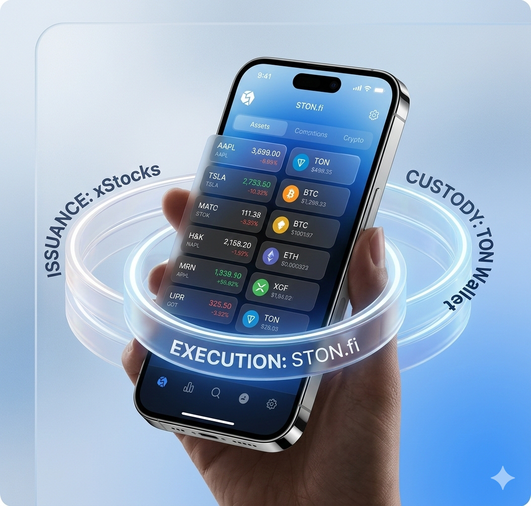 Together these pieces let a user hold a blended portfolio (crypto + equities) in one wallet and rebalance or trade at any hour through STONfi’s execution layer.