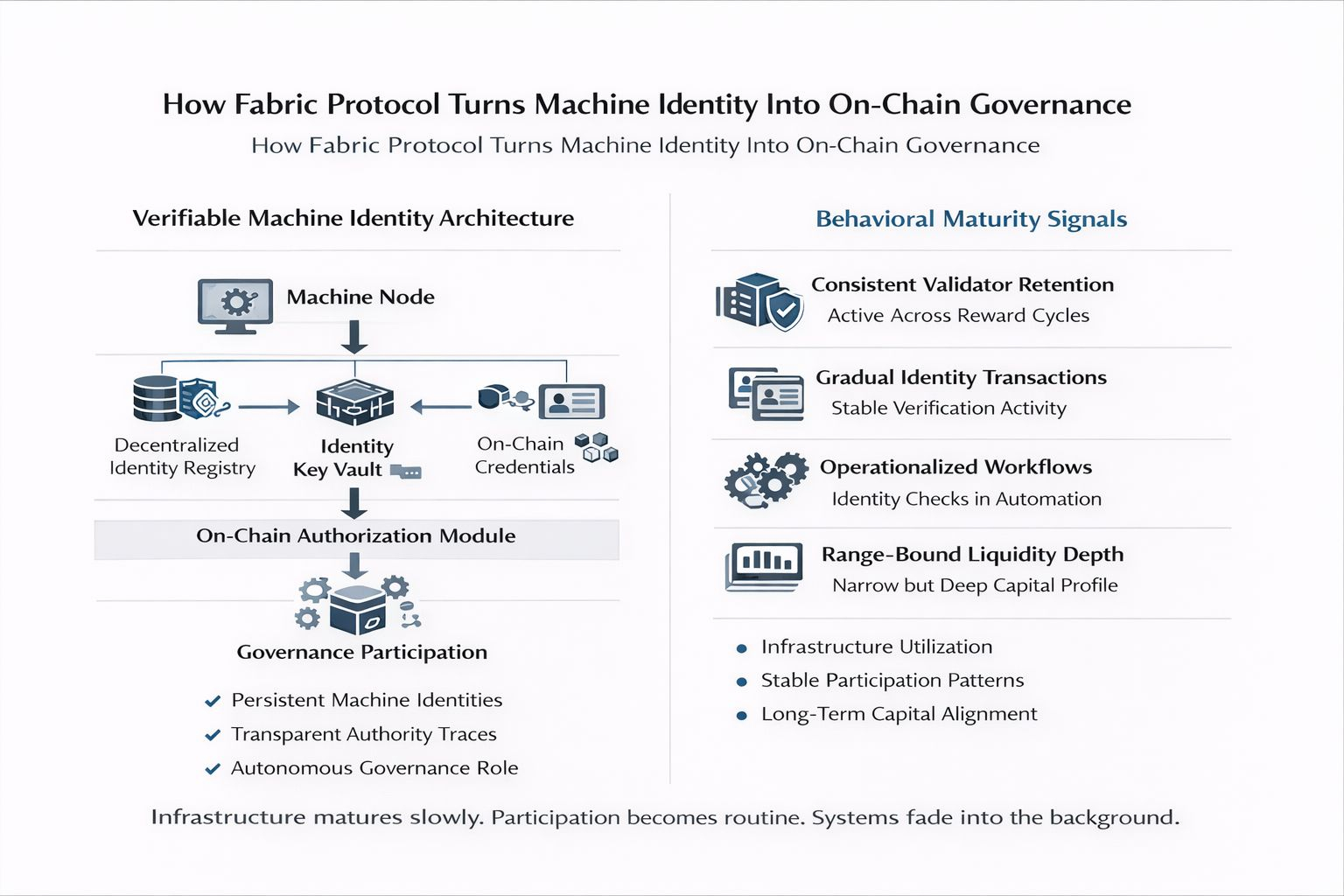 Infrastructure matures slowly. Participation becomes routine. Systems fade into the background.