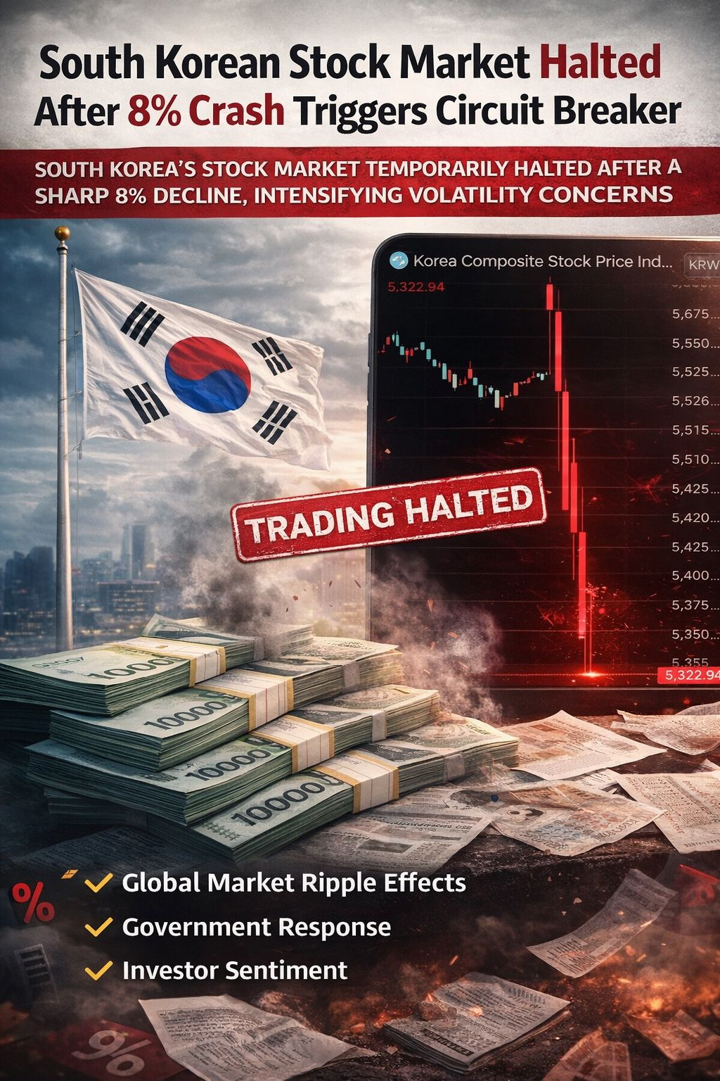 South Korea’s stock market was temporarily halted after a sharp 8% decline triggered an automatic circuit breaker, intensifying concerns about market volatility and investor sentiment.