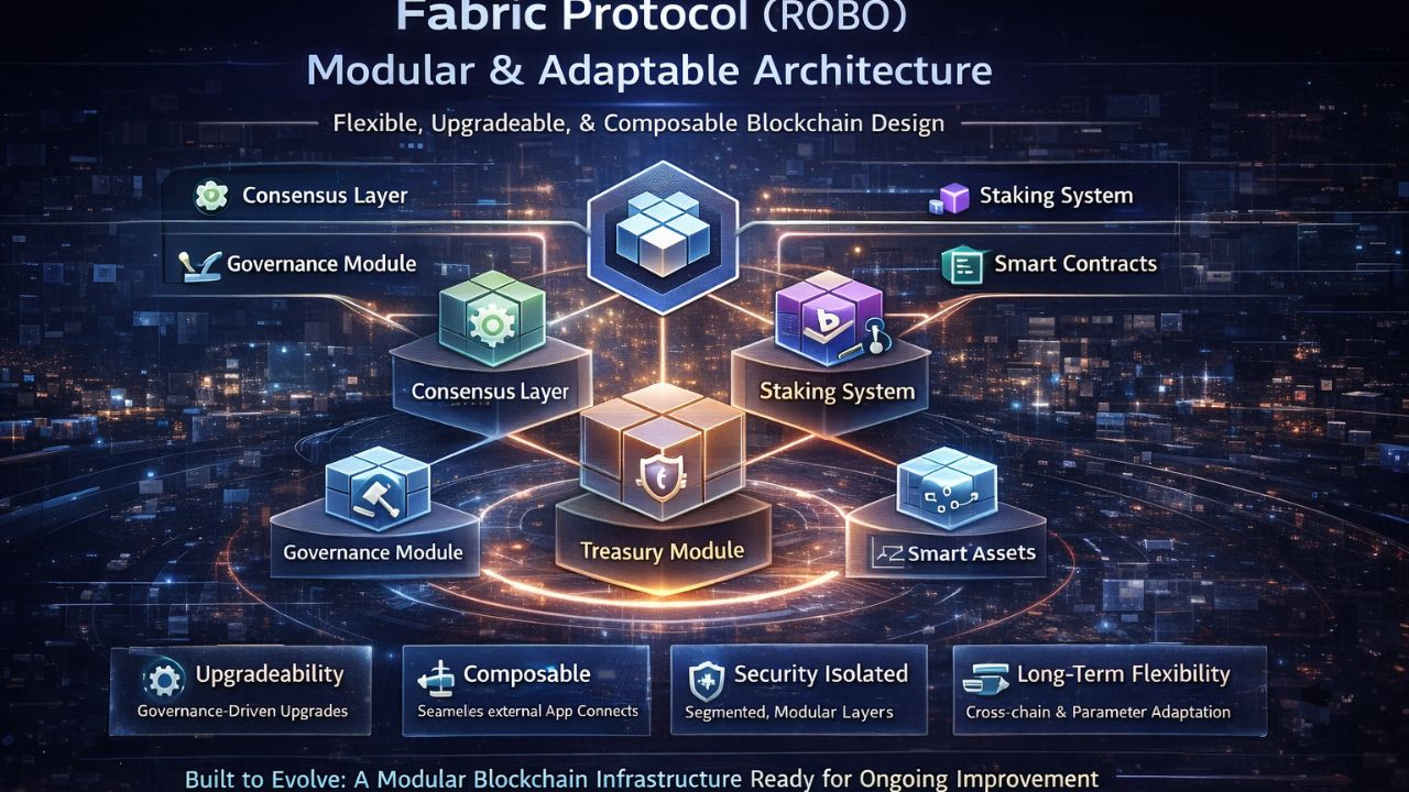 Modularna & Adaptowalna Architektura Protokółu @Fabric Foundation (#ROBO ) jest zaprojektowana, aby zapewnić długoterminową odporność w branży zdefiniowanej przez szybki rozwój technologiczny. Zamiast wbudowywać sztywną logikę w stałą strukturę, @Fabric Foundation Protokół jest zorganizowany jako elastyczny system interoperacyjnych modułów. Każda funkcja rdzeniowa — konsensus, zarządzanie, staking, zarządzanie skarbem i realizacja smart kontraktów — działa jako niezależny, ale połączony komponent. Ta separacja warstw pozwala na aktualizacje, optymalizacje i integracje bez destabilizowania całej sieci.