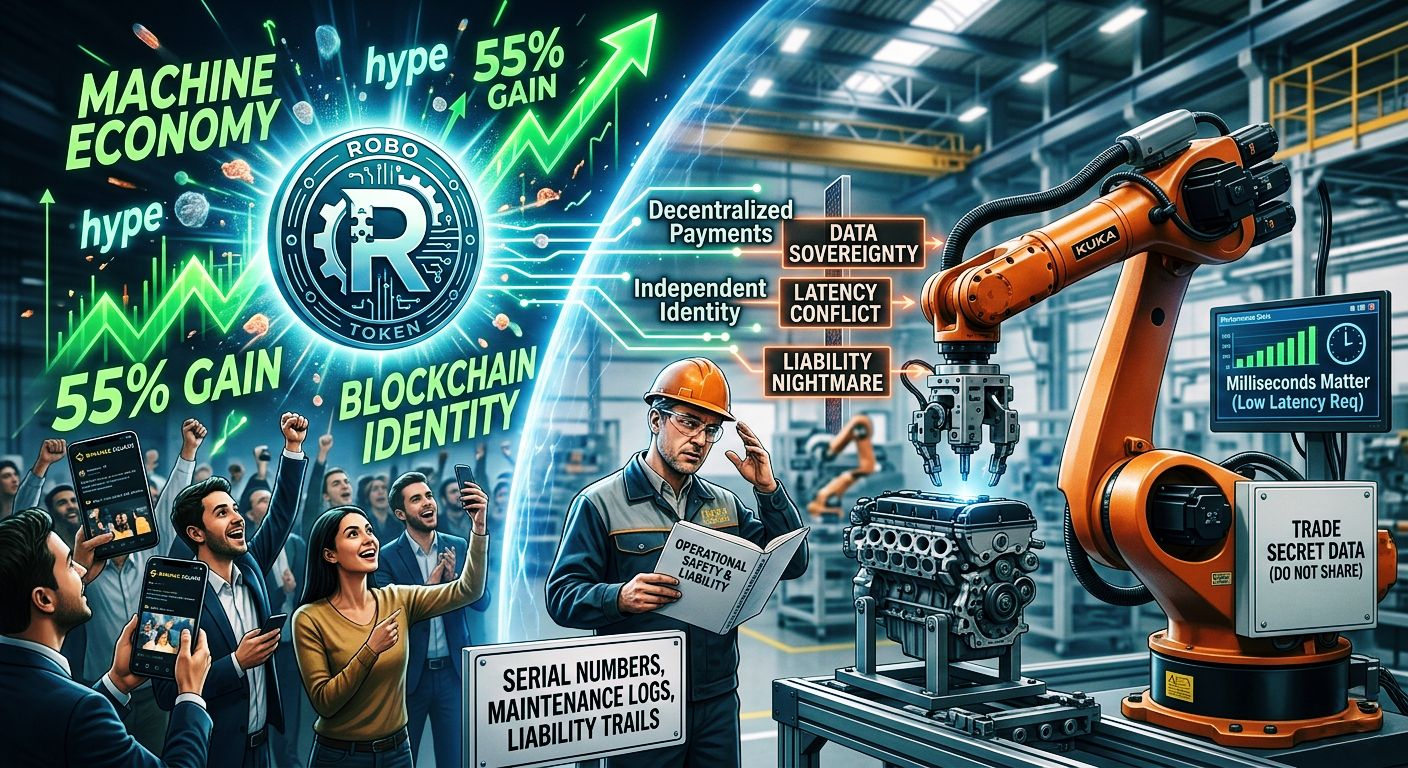 So, when ROBO shot up 55% recently and Binance Square exploded with hype, I didn't join the party. Instead, I did what experience has taught me—I stopped reading the hype posts and started talking to people who actually build robots for a living.I spoke with two experts outside the "crypto bubble"—one in industrial automation and another in service robotics. I asked them a simple question, stripped of any blockchain jargon: "Would your company use a system where machines have their own independent identities and can authorize their own payments?"