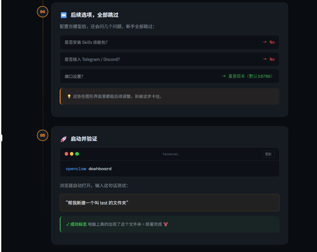 是否安装Skills技能包?→ No(先跳过)