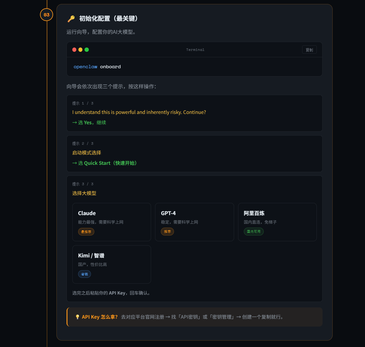 Key怎么拿?去对应平台官网注册,找"API密钥"或"密钥管理",创建一个复制就行。