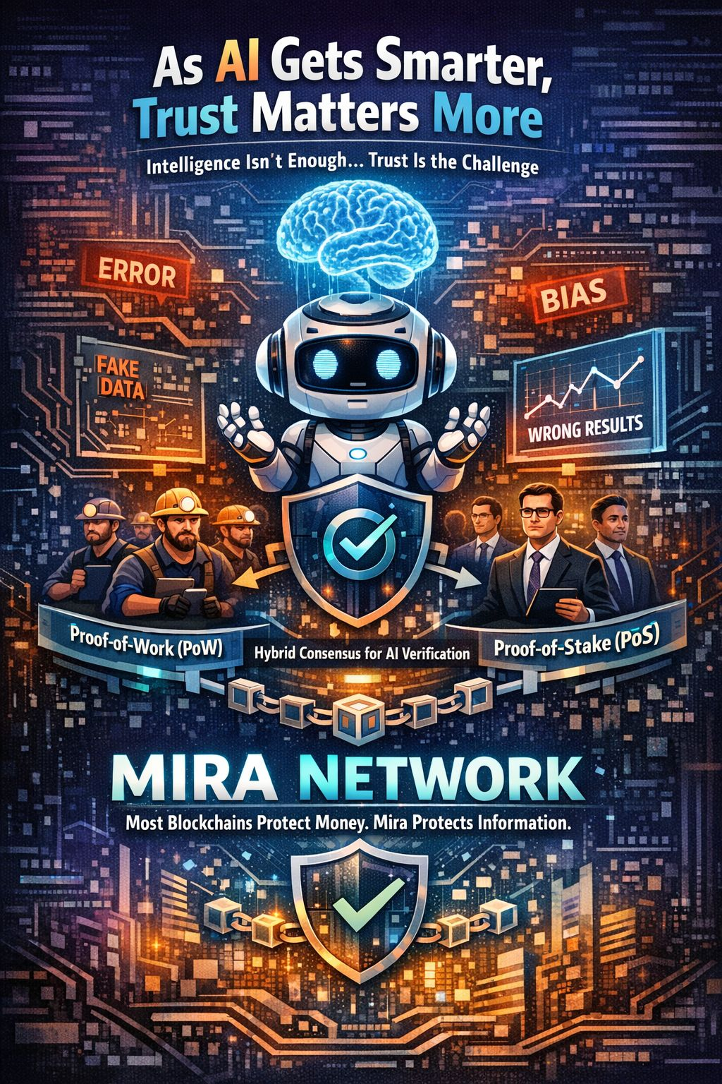 As AI systems get smarter and more independent, trust not intelligence becomes the real challenge. Sure AI can spit out answers make prediction& crunch data like nobody’s business but it still messes up. Sometimes it hallucinates facts, misreads the data or slips in its own biases. That’s where Mira Network steps in with something different: a hybrid consensus model that mixes Proof-of-Work (PoW) and Proof-of-Stake (PoS) to check AI’s answers in a decentralized, secure way.