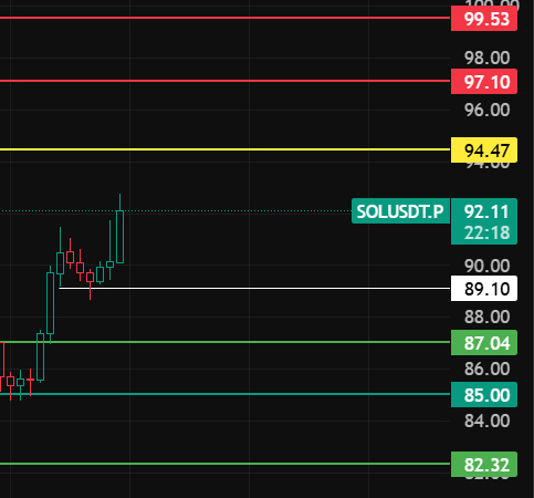 SOL nocą zwróć uwagę na to miejsce 89, dopóki nie przebijesz tego miejsca przy korekcie, trend wzrostowy nadal będzie trwał, kontynuuj wzrost, zwróć uwagę na poziomy oporu 94-97-99 w pobliżu tych miejsc!