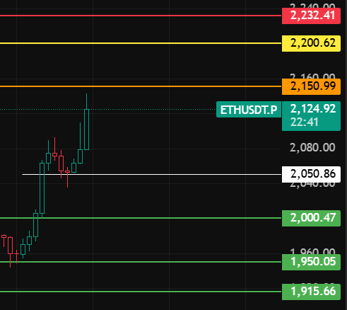 Eter nocą zwróć uwagę na to miejsce 2050, dopóki nie przebijesz tego miejsca przy korekcie, trend wzrostowy nadal będzie trwał, kontynuuj wzrost, zwróć uwagę na poziomy oporu 2150-2200-2230 w pobliżu tych miejsc!