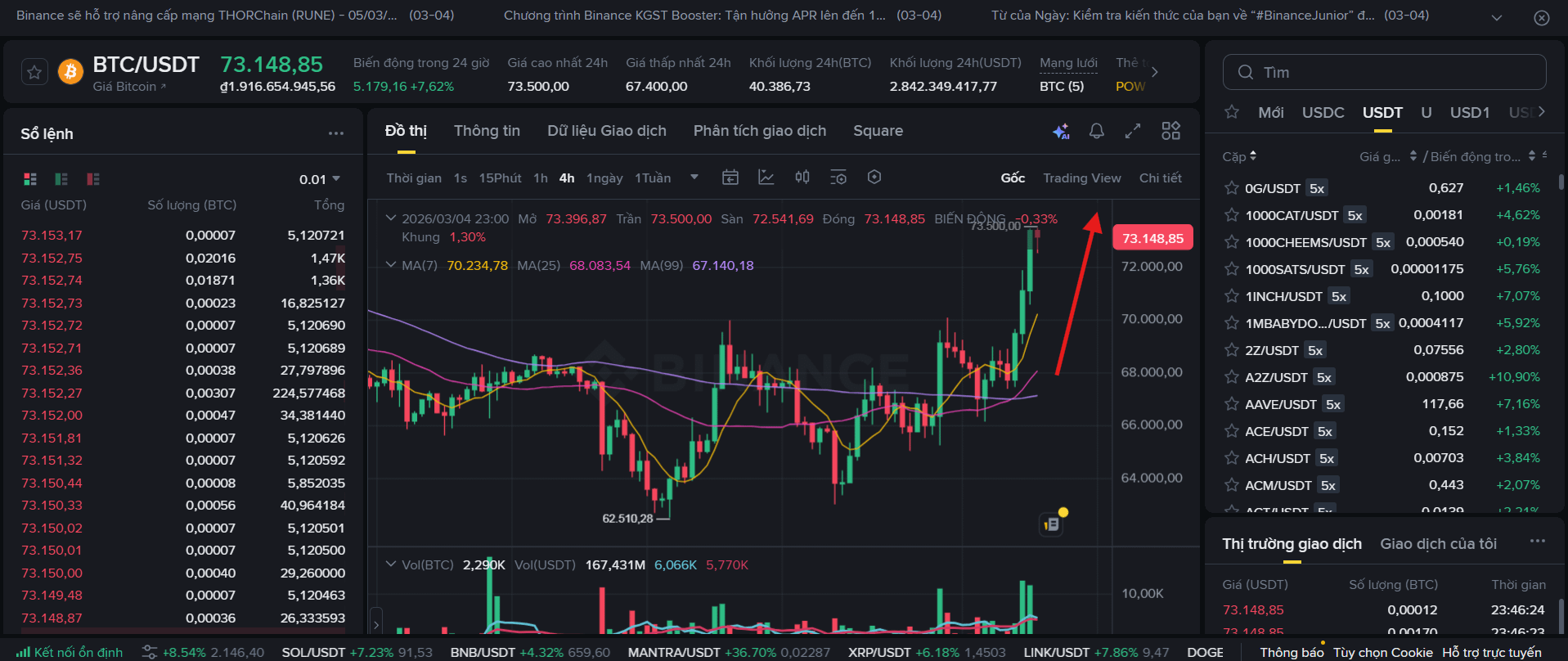 Bạn bè tiền mã hóa hỏi, khả năng BTC trên sàn Binance đạt 78000$ có lớn không?