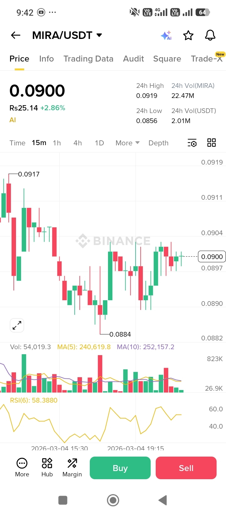 Earlier today, price moved strongly from $0.0871 up to $0.0919. That was a bullish expansion. The pullback that followed did not break the previous low — meaning we still have a higher low structure.