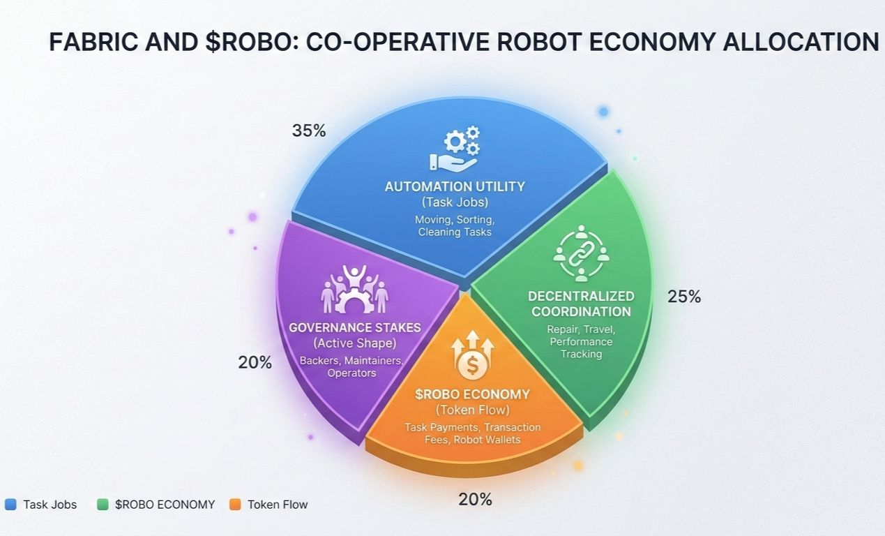 Think of Fabric like plumbing for robot work. When jobs need doing, it lines up machines that can handle them. After a task finishes and checks out, payment goes through in $ROBO. As things grow, the system learns to place robots smarter, where they fit best, whether factory or field. Its job is fitting pieces together, quietly, without fuss.