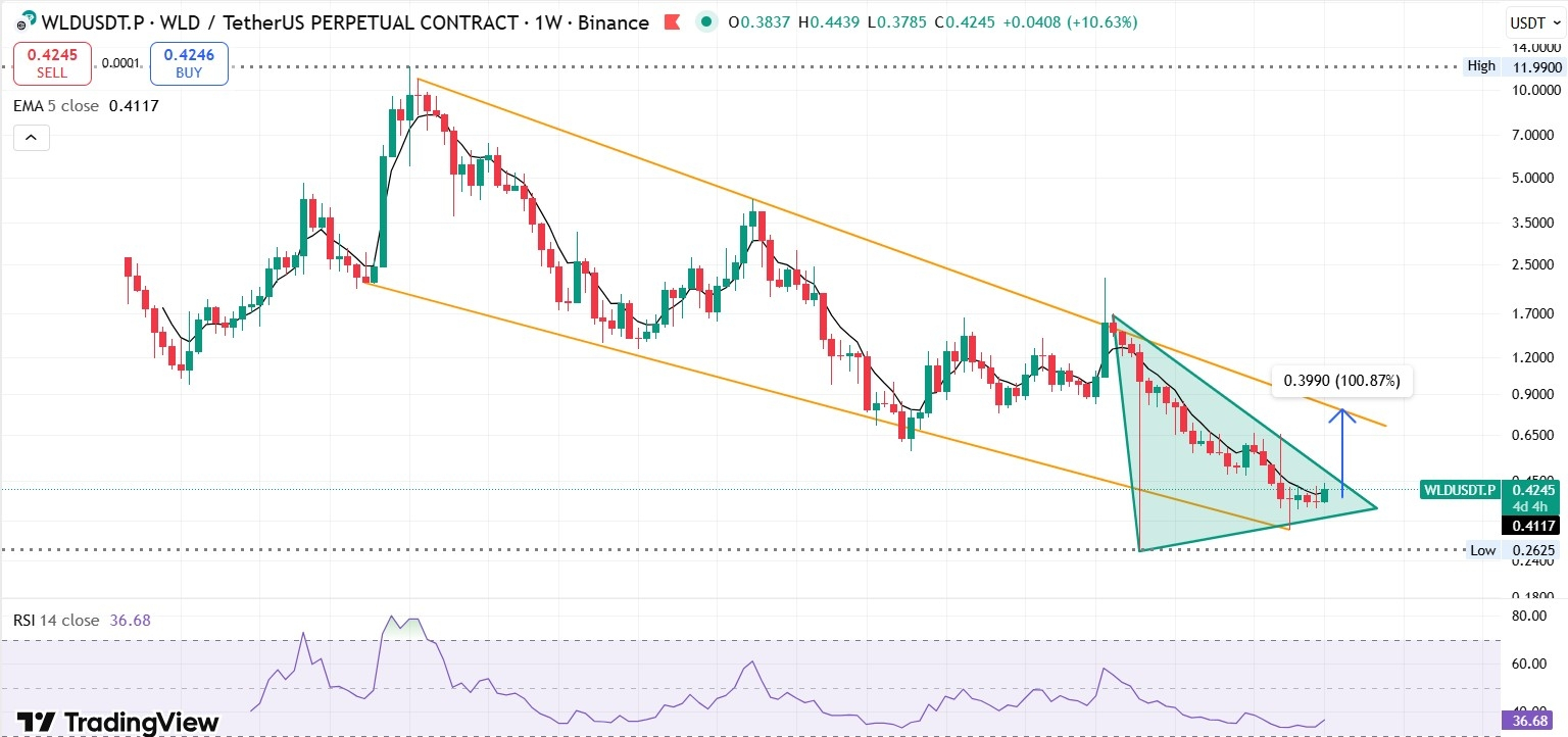 Here’s a technical analysis of $WLD @Worldcoin (weekly timeframe):