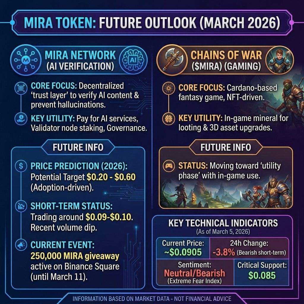 The future of the $MIRA Token (MIRA) is tied to its ambition of becoming the "trust layer" for the AI-driven economy. As we move through 2026, the project is transitioning from a conceptual infrastructure to a live utility network.