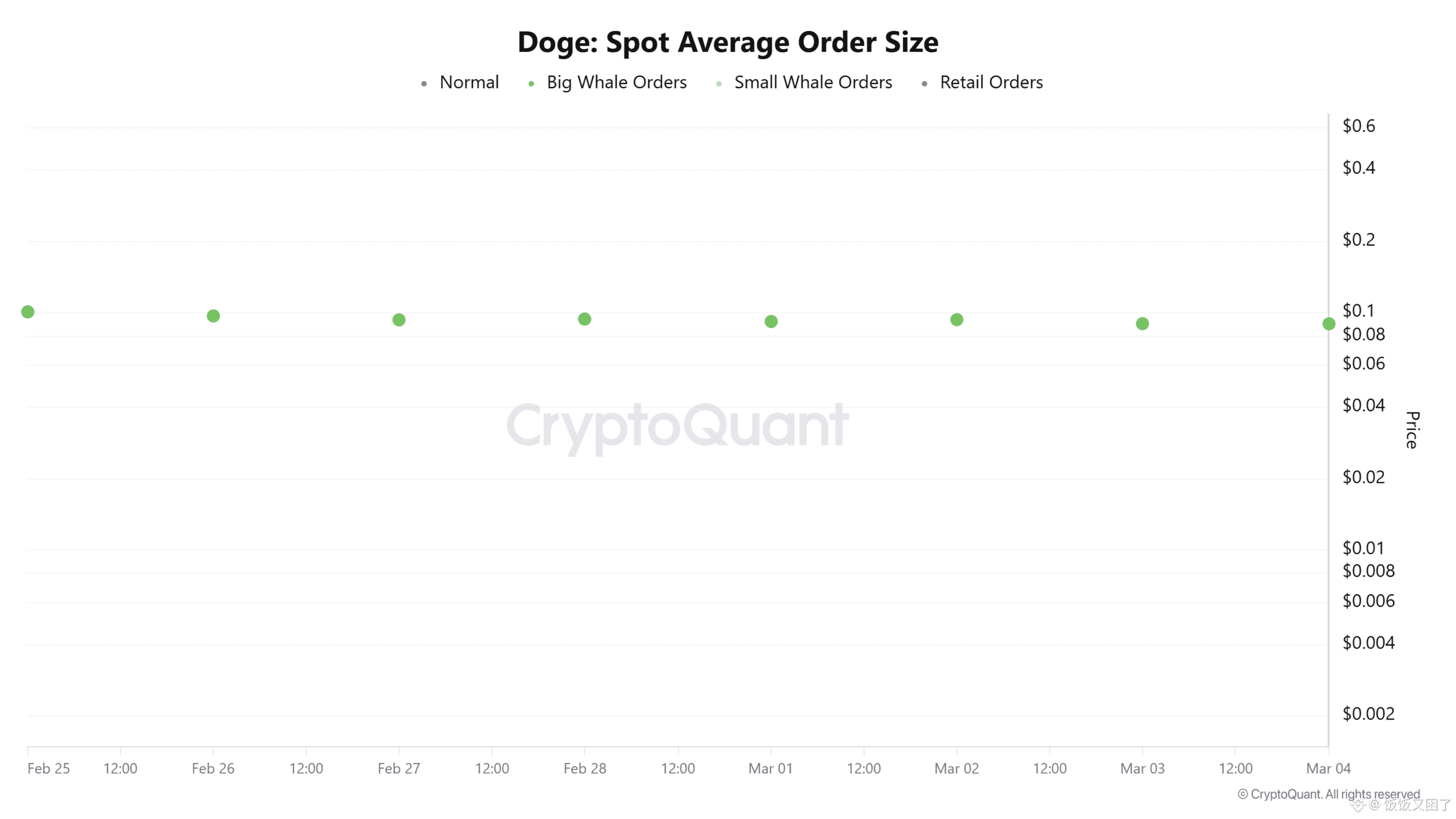 这意味着当前市场存在明显的卖压,而散户缺乏买盘支撑,市场依然偏疲软。即便DOGE价格小幅反弹至0.092美元,整体市场结构仍未真正改善。