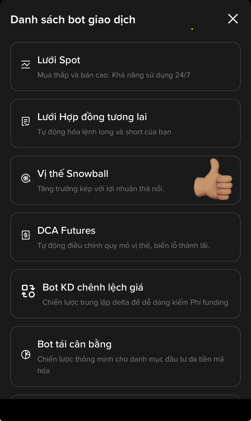 Hiểu và sử dụng đúng Bot Vị thế Snowball không chỉ giúp trader tối ưu hóa lợi nhuận khi thị trường đi đúng hướng, mà còn giúp thay đổi cách nhìn về giao dịch. Thay vì cố gắng chiến thắng trong mọi biến động nhỏ của thị trường, trader có thể tập trung vào điều quan trọng hơn: để xu hướng làm phần lớn công việc tạo ra lợi nhuận