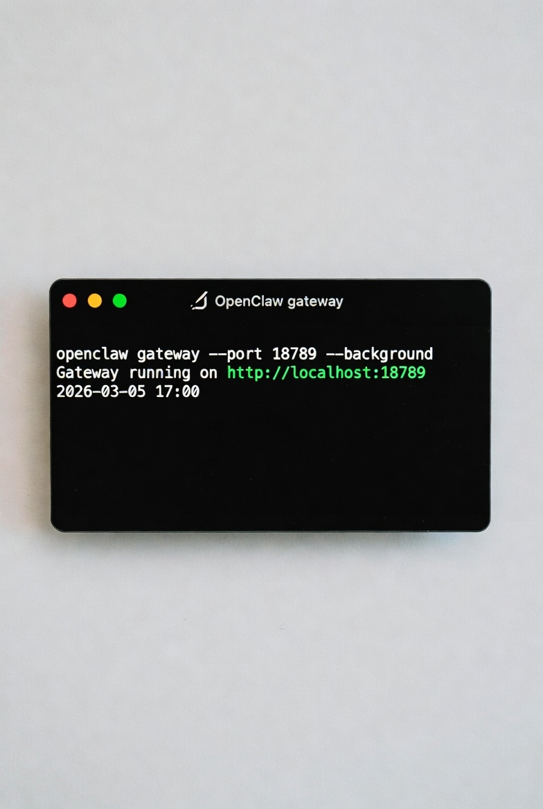 Po udanym uruchomieniu zobaczysz: Brama działająca na http://localhost:18789