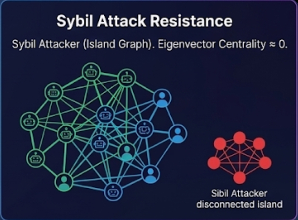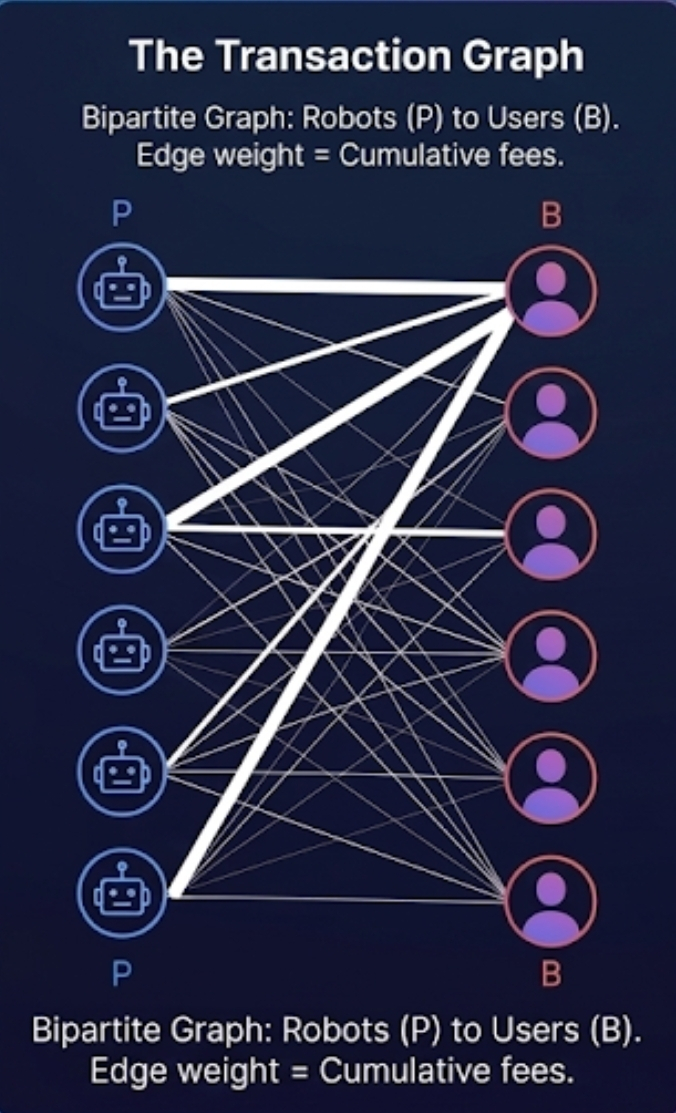Third, the Evolutionary Reward Layer solves the cold-start problem through a hybrid graph-based system. During early stages when revenue is sparse, rewards prioritize activity and connectivity. As the network matures, weighting shifts toward revenue generation. The bipartite transaction graph connecting robots to users naturally resists Sybil attacks, as fraudulent operators creating fake transactions form disconnected "island graphs" with negligible centrality, making manipulation economically irrational.