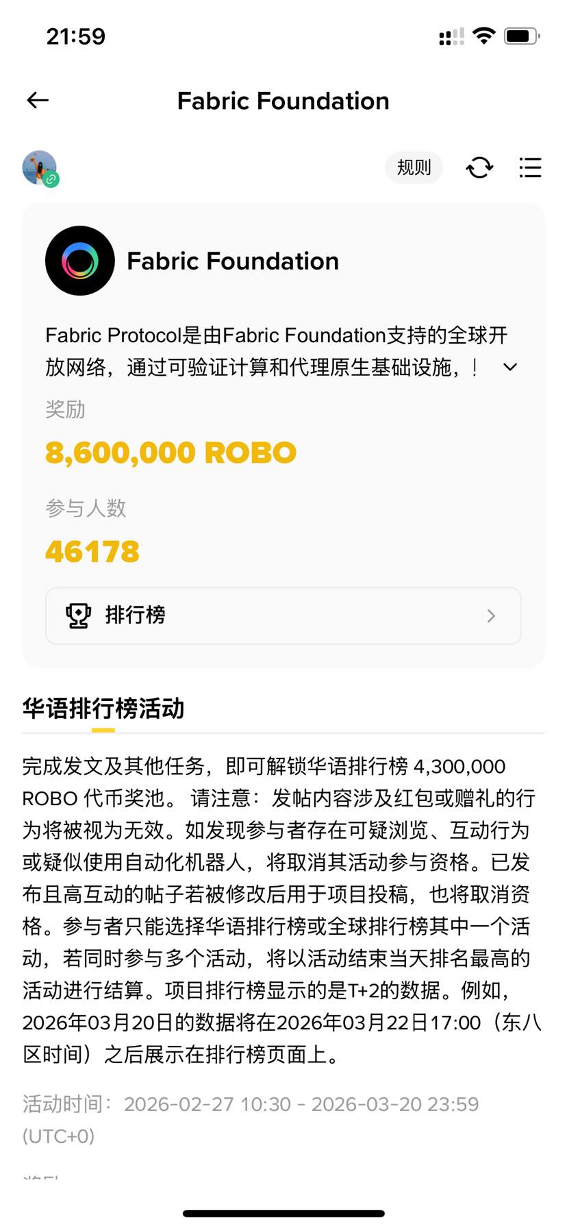 与此同时,ROBO/USDT 与 ROBO/USDC 交易对已经正式上线,并同步启动10万美元交易竞赛。交易活动往往会迅速放大成交量,让原本沉寂的市场突然变得活跃。