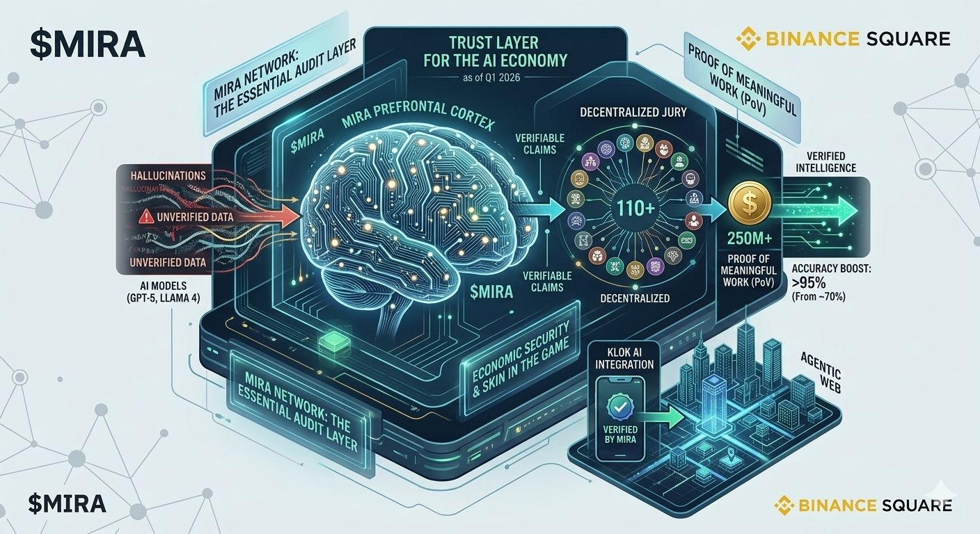 Podczas gdy nawigujemy przez Q1 2026, rynek kryptowalut dojrzał poza "hype'em AI" i przeszedł w kierunku "użyteczności AI." Zrozumieliśmy, że chociaż modele takie jak GPT-5 czy Llama 4 są potężne, nie są z natury godne zaufania w przypadku transakcji on-chain o wysokiej stawce. To tutaj Mira Network ($MIRA ) wyrobiło sobie niszę jako zdecentralizowana "Warstwa Zaufania."