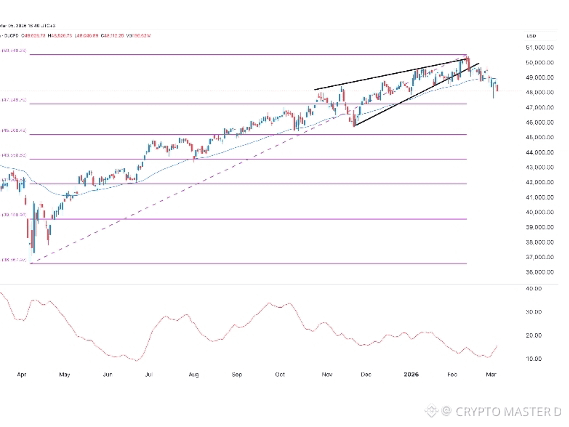 The index has formed a rising wedge pattern, pointing to more downside.