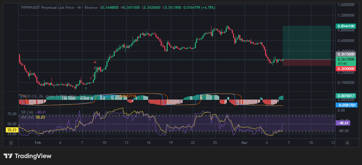Vùng giá nhạy cảm: Sau khi đạt đỉnh cao mọi thời đại quanh $0.90 vào tháng 2, PIPPIN hiện đang trải qua giai đoạn điều chỉnh mạnh và giao dịch trong vùng $0.33 - $0.35.