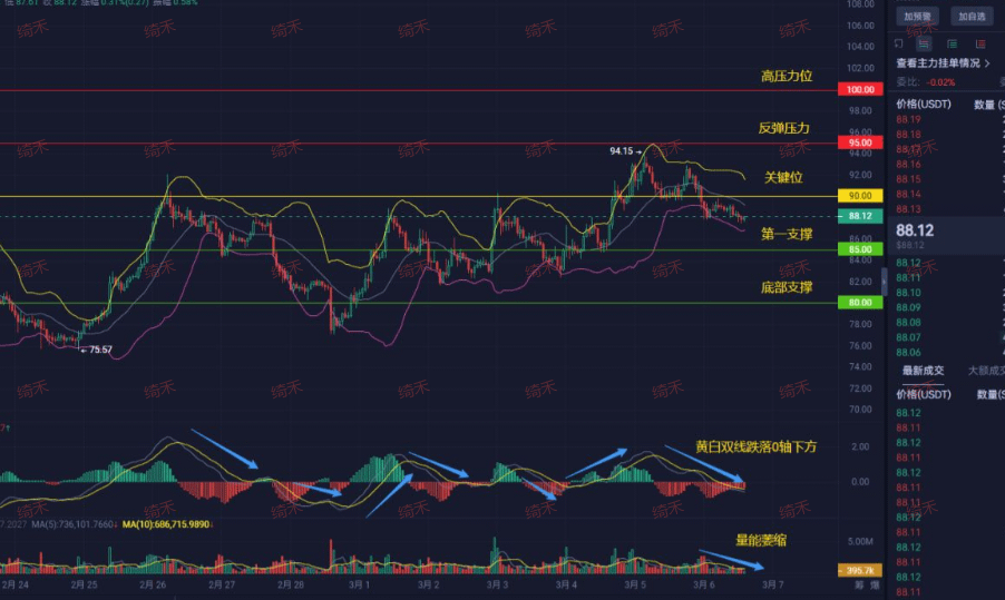 仓位管理:如果手里还有SOL,别慌着割肉!先看88.12的支撑,要是撑住不破,可逢低补点;如果跌破88,下看85甚至80,到时候再考虑止损或加仓。