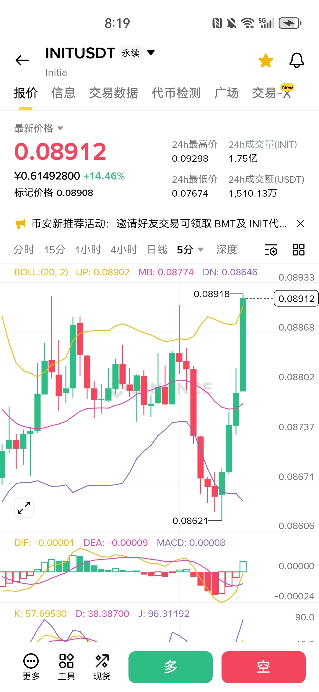 本次大涨的直接催化剂为币安新推荐活动:平台推出“邀请好友交易可领取BMT及INIT代币”的营销激励,直接带动INIT的交易需求与市场关注度,属于典型的平台活动驱动型行情。