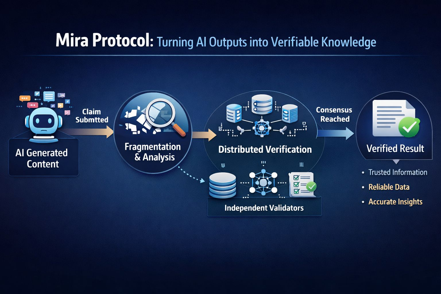 Some newer verification systems—like Mira Protocol—work by taking a statement and breaking it into smaller parts. Each small piece, or fragment, is evaluated separately. Different systems or validators examine these fragments, compare their conclusions, and only when enough agreement appears does the original claim begin to look trustworthy.
