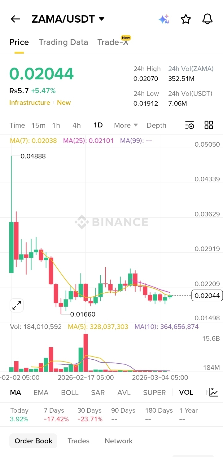 📊 ZAMA — Daily Chart Summary (Crypto)