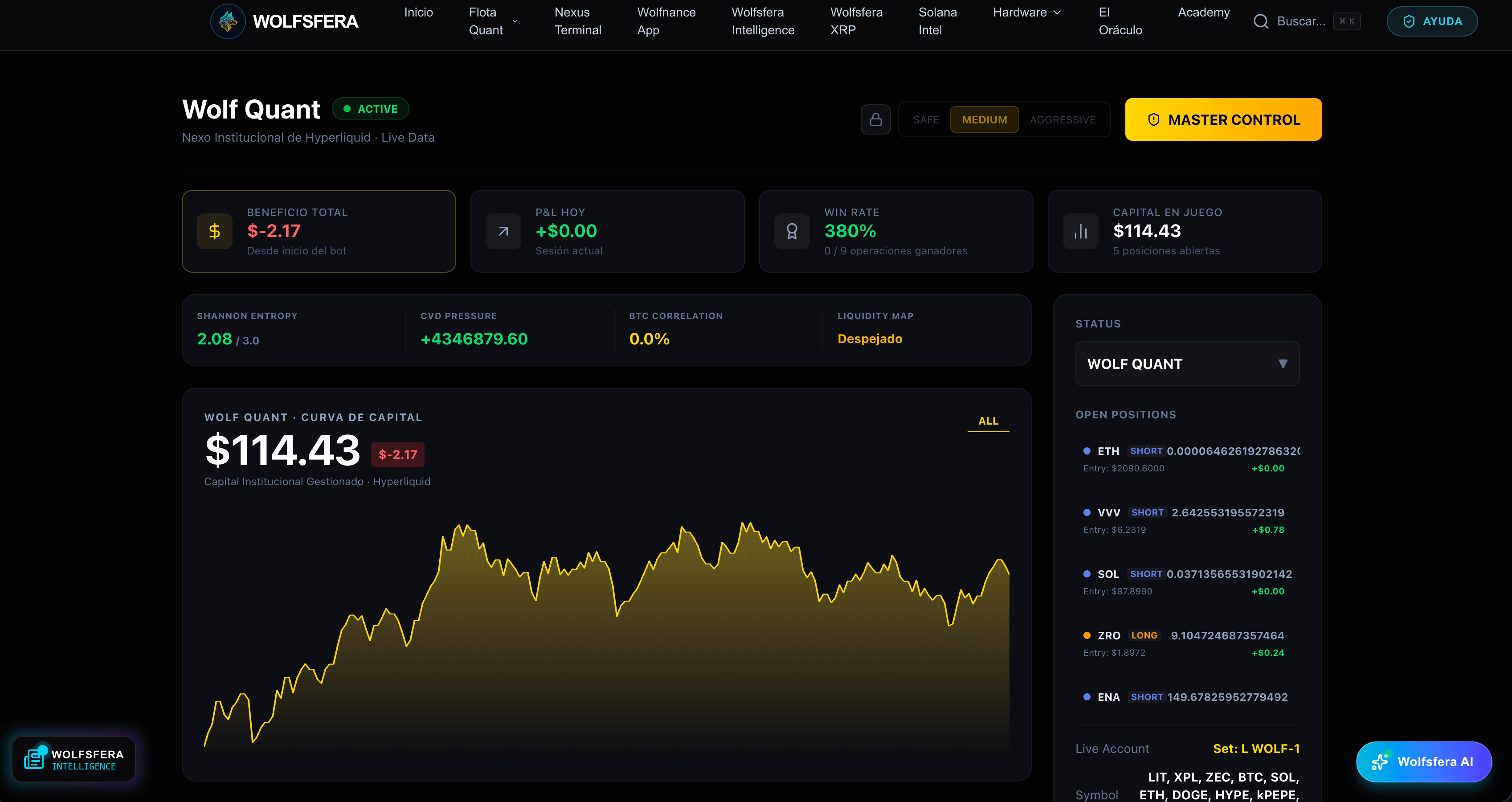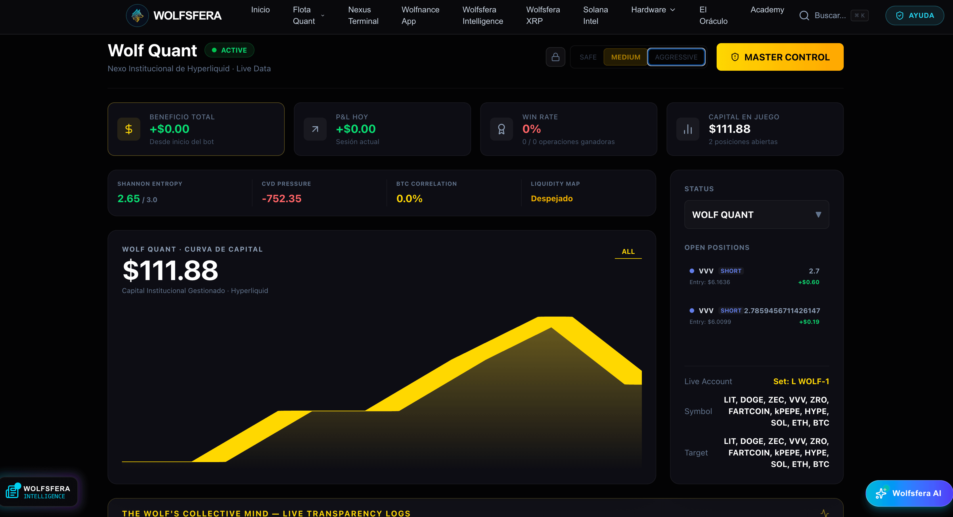 El Wolf-Genérico es el General de Brigada de tu flota cuantitativa. A diferencia de los bots temáticos que están limitados a una sola moneda, el Engendro tiene visión total del mercado. Su misión es escanear los más de 100 activos de Hyperliquid y ejecutar ataques quirúrgicos donde el momentum es máximo.