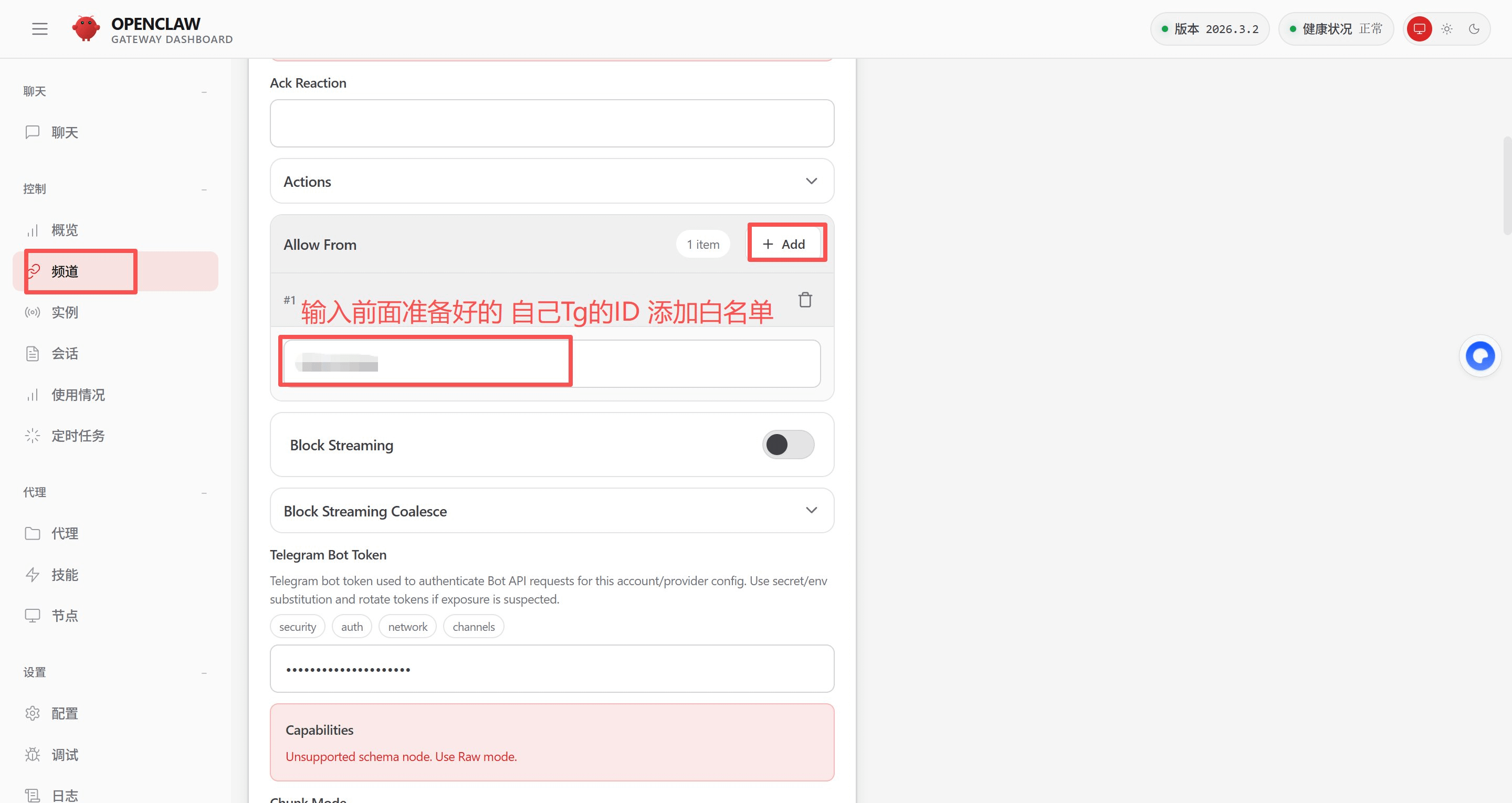 4. Skonfiguruj białą listę dla bota Telegram