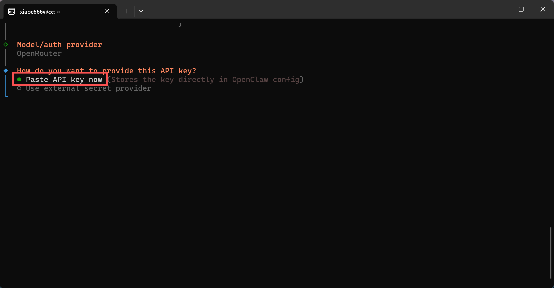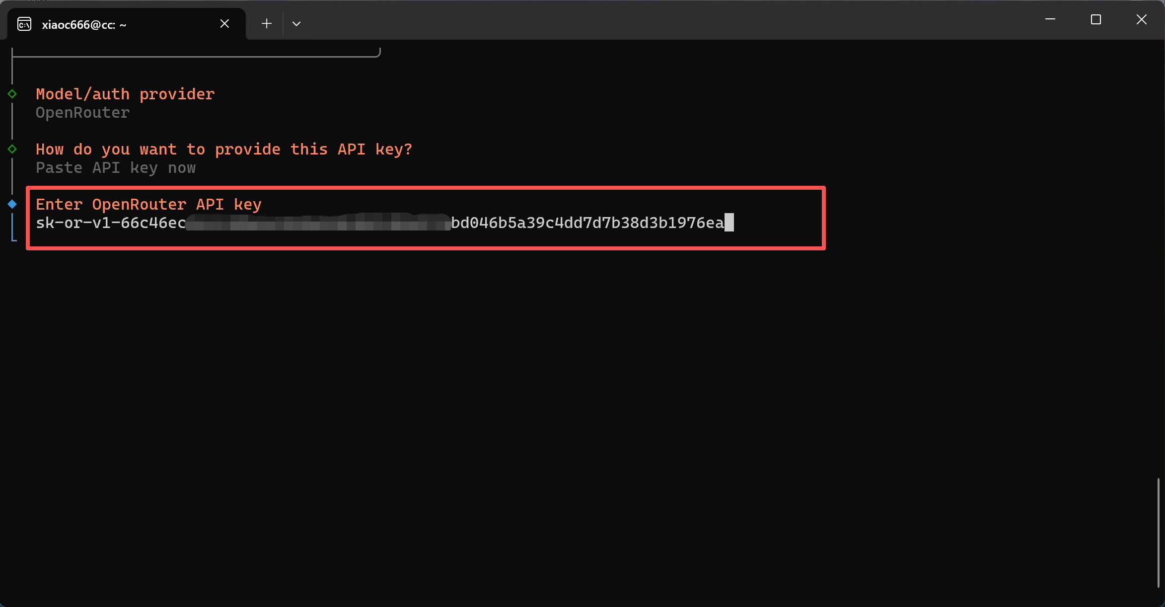 Następnie wklej przygotowany wcześniej klucz API OpenRouter