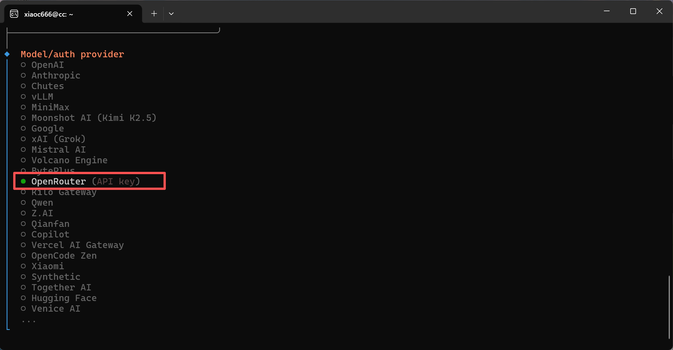 3. Wybierz dostawcę modelu: OpenRouter