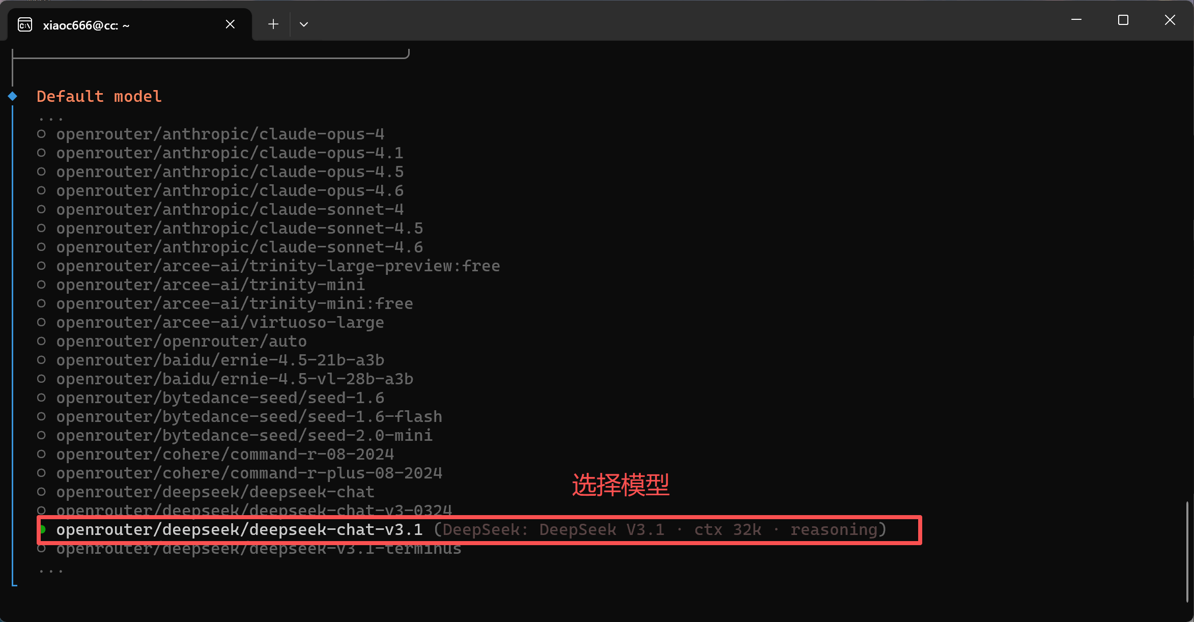 Wybór modelu, tutaj wybieram: DeepSeek V3.1