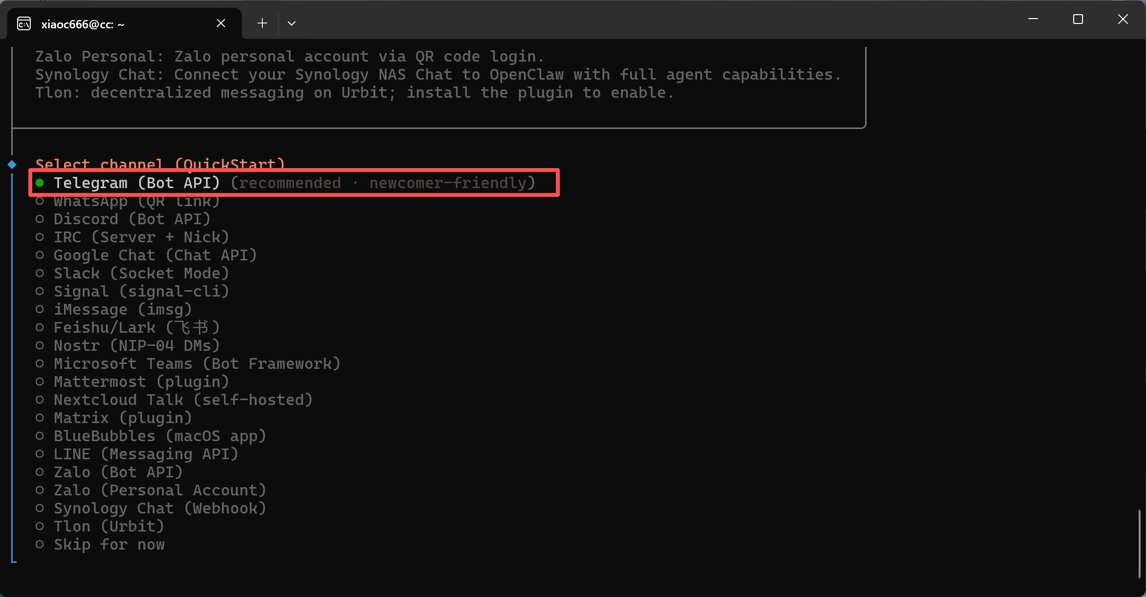 Wybierz kanał czatu: Telegram