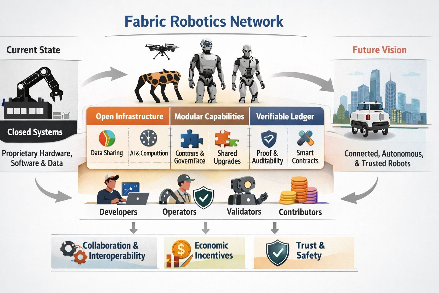 Just as smartphones evolved through app ecosystems, Fabric imagines robots evolving through modular capabilities that can be shared, improved, and governed collectively.