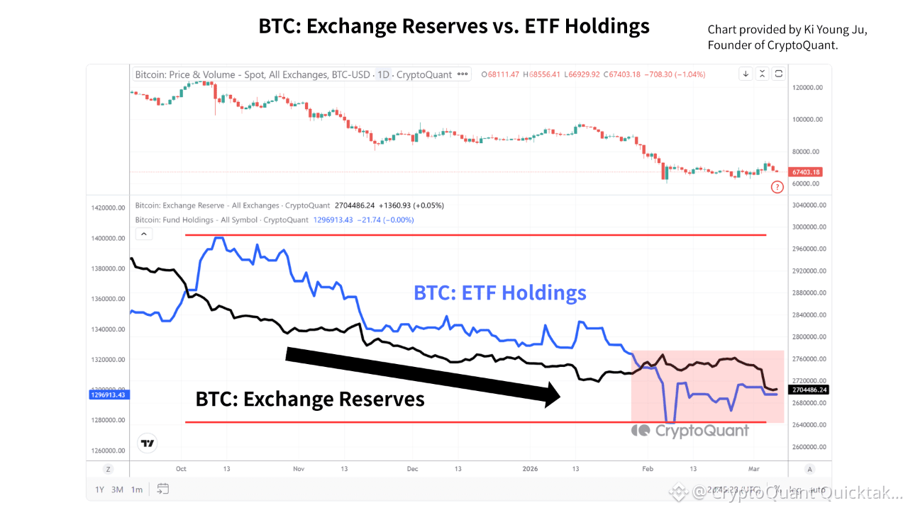 CryptoQuant data, with charts provided by Ki Young Ju, Founder of CryptoQuant, shows that Bitcoin exchange reserves have been gradually declining since late 2024. A reduction in exchange balances generally means fewer coins are immediately available for sale, which can indicate long-term holding behavior or transfers to self-custody.