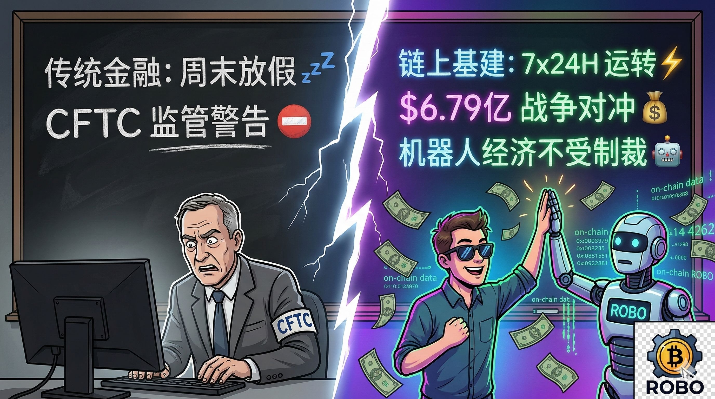 这逻辑跟我一直死磕的 Fabric Protocol 是一模一样的。Fabric 是给机器人搞链上经济底座的。看着跟打仗没关系,但内核都在贩卖同一套叙事:世界越是不确定,那种不看单一国家脸色、不需要机构批准就能自主结算的去中心化基建,就越值钱。伊朗人用大饼绕开制裁,资金在链上对冲战争风险,都是一个硬币的两面。