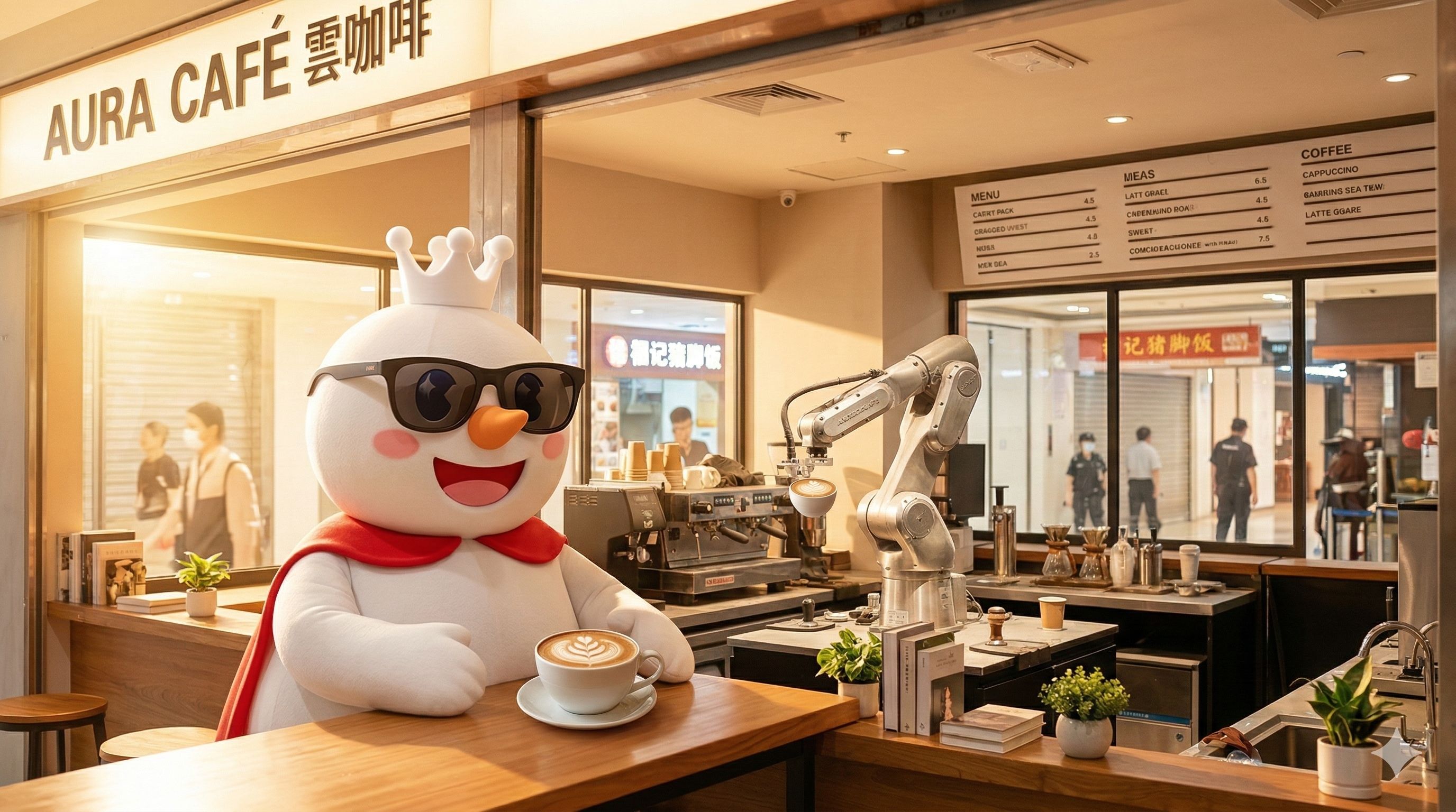 但让我走不动道的是,吧台里那台造价大几十万的拉花机械臂,孤零零地立在那儿,上面落了一层灰。